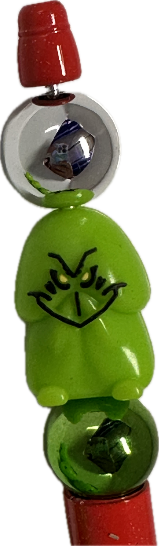 3D Christmas Richard/silicone focal bead / green guy face on weiner shaped pen bead