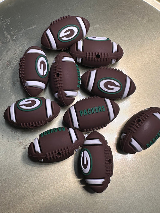 3D Green Bay Packers focal bead /football shaped silicone pen bead