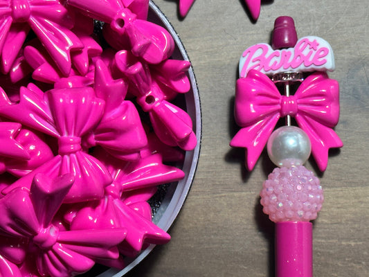 5 bow beads/Focal Bead/ beadable pen/ Silicone bead/ keychain bead/ pink