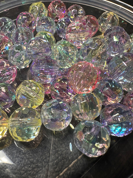 Resin faceted clear beads / see thru beads/clear 16mm beads/ sparkle beads/ pen beading beads/ bling beads/ keychain beads/ DIY/ Ten beads included (10)