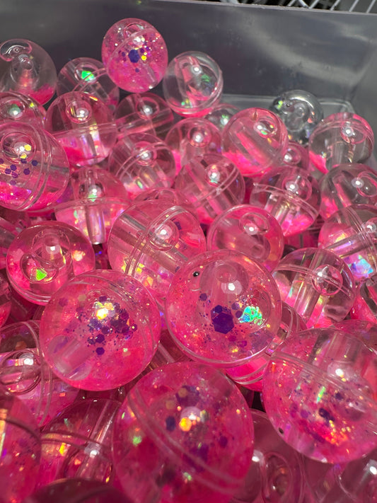 Pink glitter liquid beads included/ jewelry Bead/ beadable pen beads/ keychain bead/ DIY/ water globe beads/ 18mm/ five (5) beads included