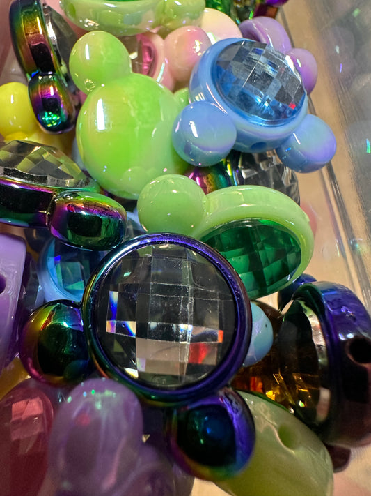Colorful acrylic ear shaped with rhinestone in middle /Ten (10) beads included/ beadable pen/ keychain bead/ cube bead/