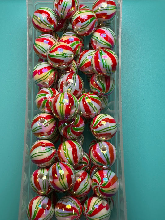 Acrylic red, green, and white striped beads included/ Bead/ beadable pen/ keychain bead/ Christmas bead/ Ten (10) beads