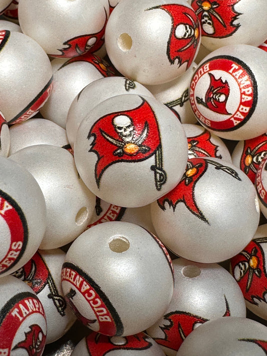 Acrylic Tampa Bay Buccaneers football on satin white beads/ sports team bead/ beadable pen/ keychain bead/16 mm/10 beads included/2 designs