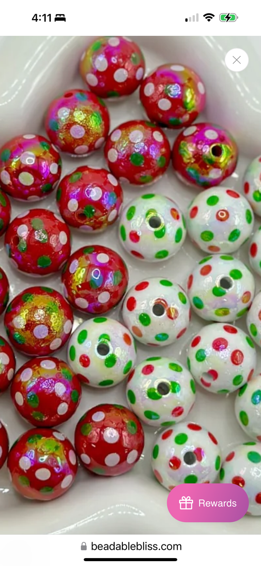 Acrylic red, green, and white spotted beads included/ Bead/ beadable pen/ keychain bead/ Christmas bead/ Ten (10) beads