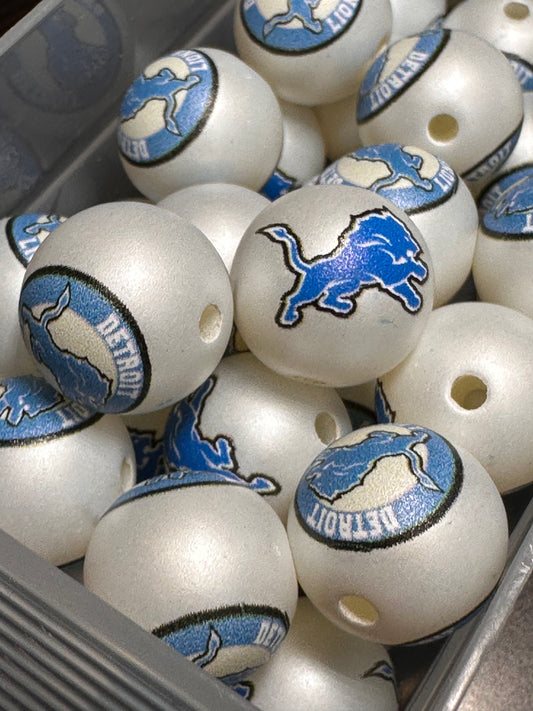 Acrylic Detroit Lions football on satin white beads/ sports team bead/ beadable pen/ keychain bead/16 mm/10 beads included