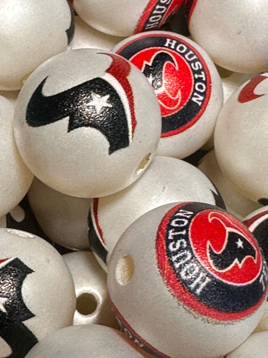 Acrylic Houston Texans football on satin white beads/ sports team bead/ beadable pen/ keychain bead/16 mm/10 beads included