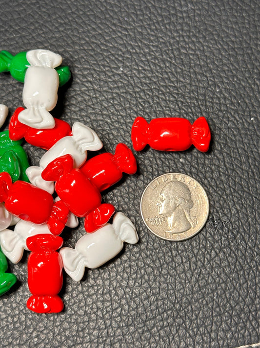Acrylic red, green, and white candy shaped beads included/ Bead/ beadable pen/ keychain bead/ Christmas bead/ Ten (10) beads