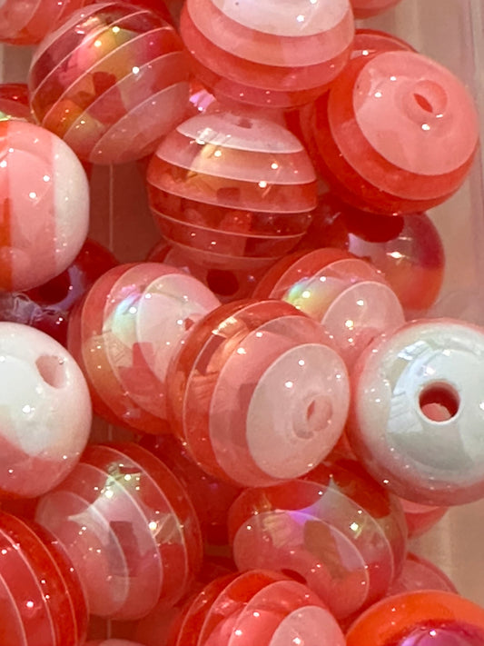 Acrylic striped pinks and white beads included/ striped Bead/ beadable pen/ keychain bead/16 mm/10 beads included