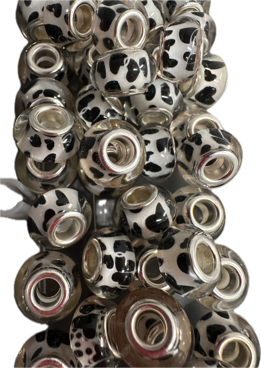 Ten (10) resin black and white cow spots spacers included/ jewelry Bead/ beadable pen beads/ keychain bead/bead/12mm