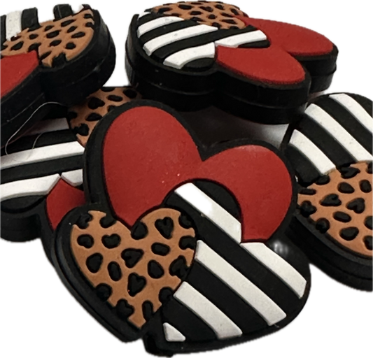 Triple leopard print Heart beads/ beadable pen/ Silicone bead/ keychain bead/Valentines Day hearts/#2