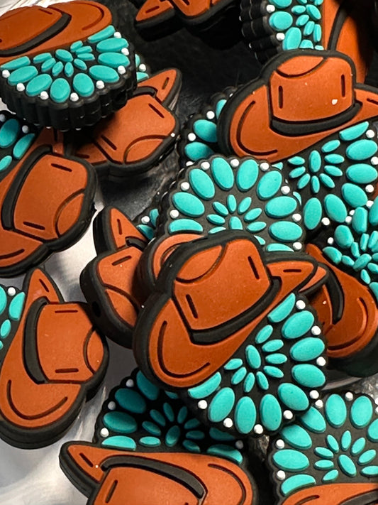 Turquoise Focal Bead/ beadable pen/ Silicone bead/ keychain bead/DIY/cowboy hat/ western/ concho