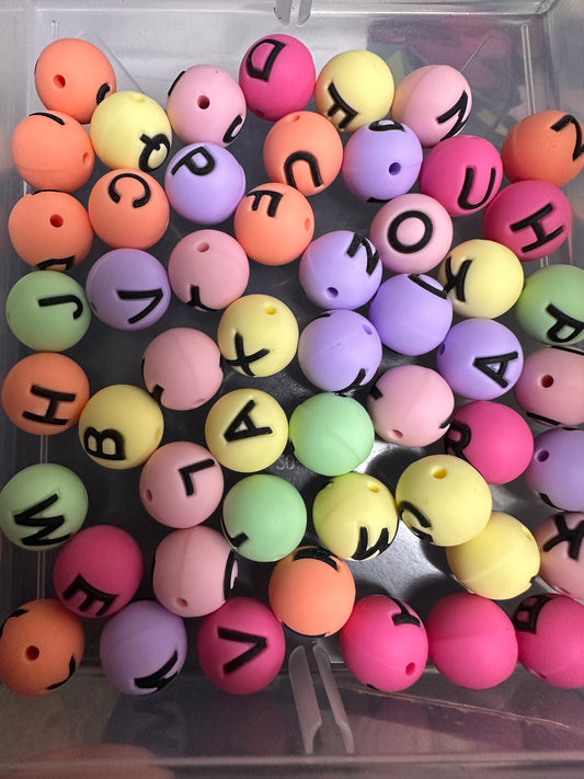Yellow color alphabet letter set silicone round beads/ 26 beads included/15 mm/ pen/ keychain beads/ hole top to bottom/ hard to find beadperfect for beadable pens and keychain DIY/