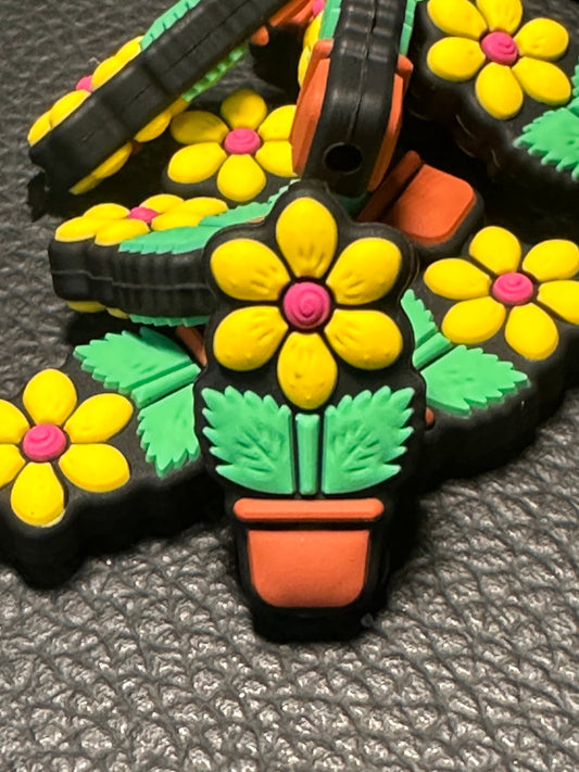 Yellow flower in flower pot/ Focal Bead/ beadable pen/ Silicone bead/ keychain bead/ DIY/ Daisy flower