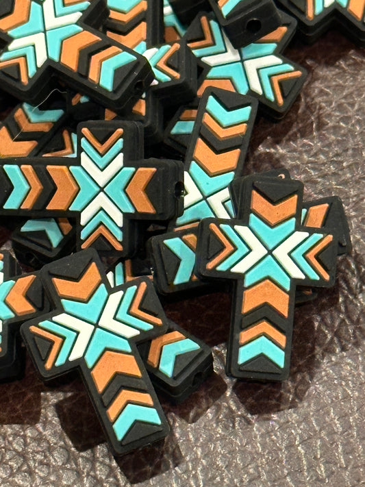 Aztec cross bead/ beadable pen/ Silicone bead/ keychain bead/ pen bead