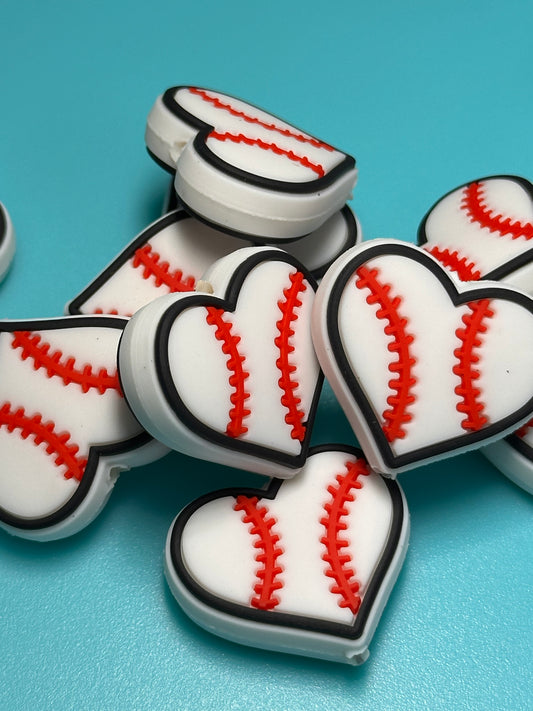 Baseball heart silicone focal bead/ Baseball /TBall