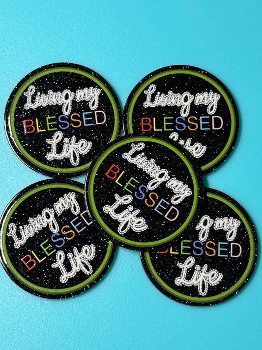 Badge Reel -Living my blessed life acrylic pieces/ badge reel/ keychain/ planar