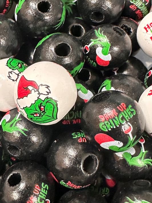 Black wooden beads with green guy design with approx 4 mm hole/ wooden Christmas bead/ green guy/perfect for keychains bracelets pens and crafts /14 mm