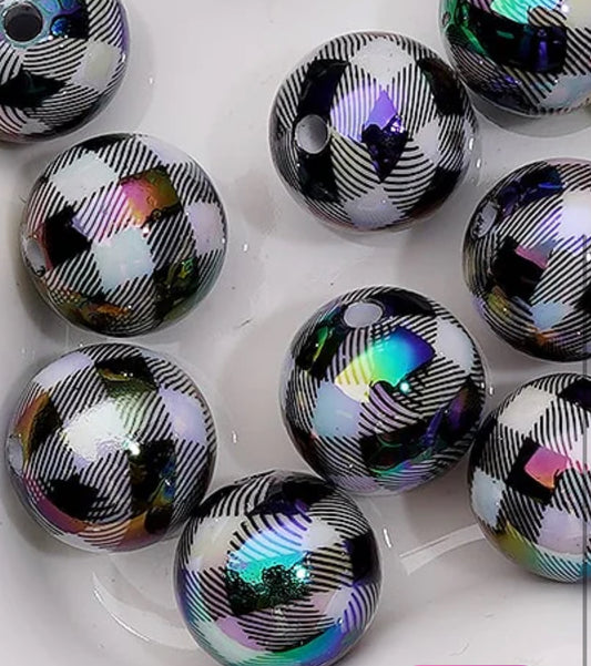 Black and white checkered pattern on jelly beads/ Ten (10) acrylic black and white only round shaped beads included/ jewelry Bead/ beadable pen beads/ keychain bead/ DIY/ shiny unique 16mm beads UV coated/