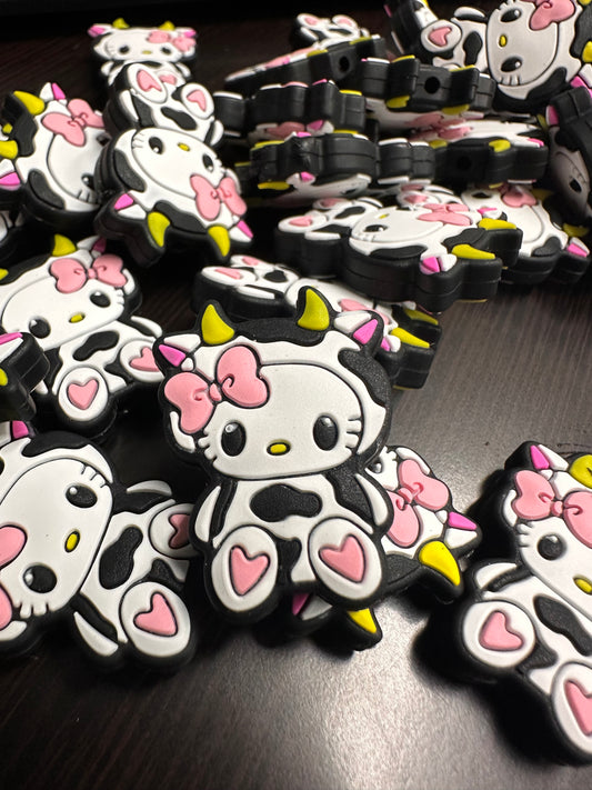 Black and white cows / Focal Bead/ beadable pen/ Silicone bead/ keychain bead/ animal/ farm/cat cow
