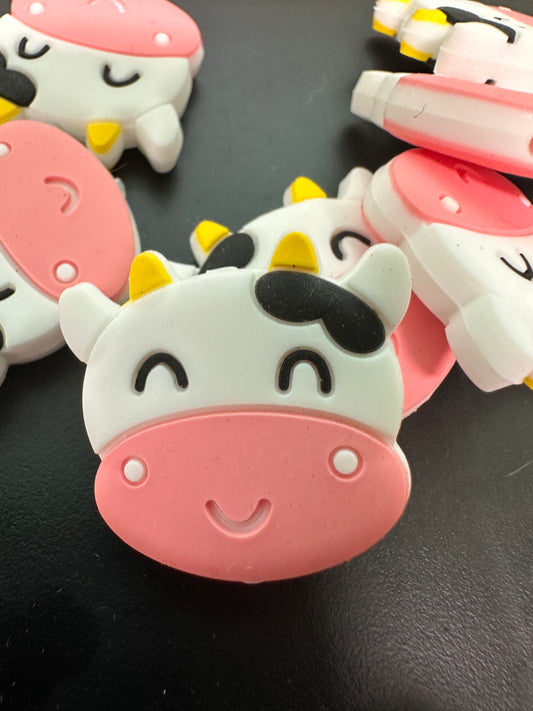 Black and white cows / Focal Bead/ beadable pen/ Silicone bead/ keychain bead/ animal/ farm/ pink nose and grey nose