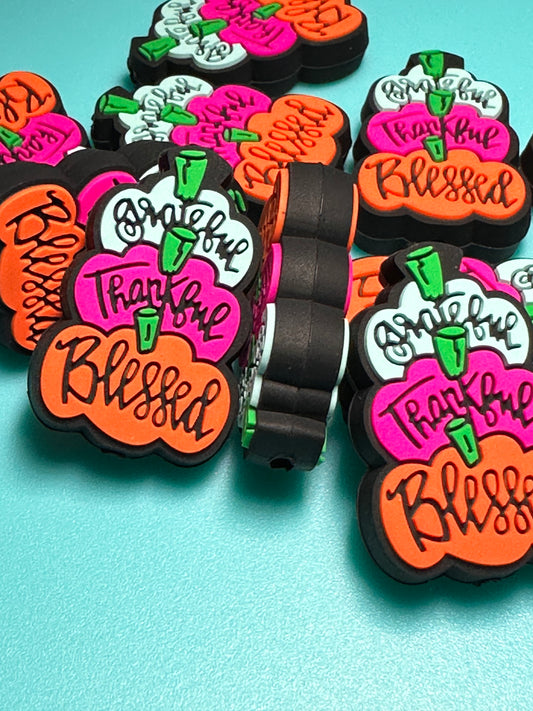 Blessed fall triple pumpkin /Focal Bead/ beadable pen/ Silicone bead/ keychain beads/ Halloween
