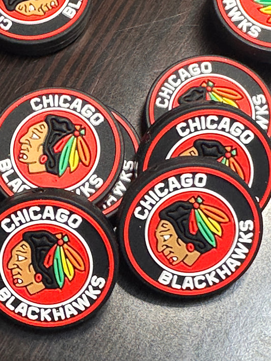 Chicago Blackhawks round focal bead/ ice hockey