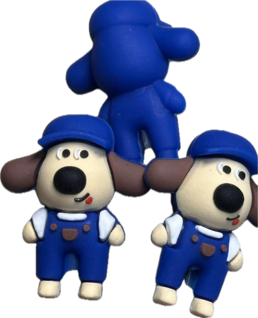 3D Dog with blue overalls/ silicone focal bead/ pen beads/ keychain beads