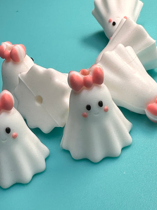 3D cute pink bow ghost silicone focal bead/ friendly ghost/ Halloween