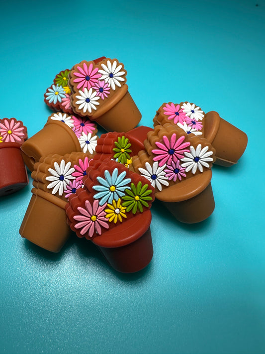 3D flowers in flower pots/ Focal Bead/ beadable pen/ Silicone bead/ daisies/ keychain bead/
