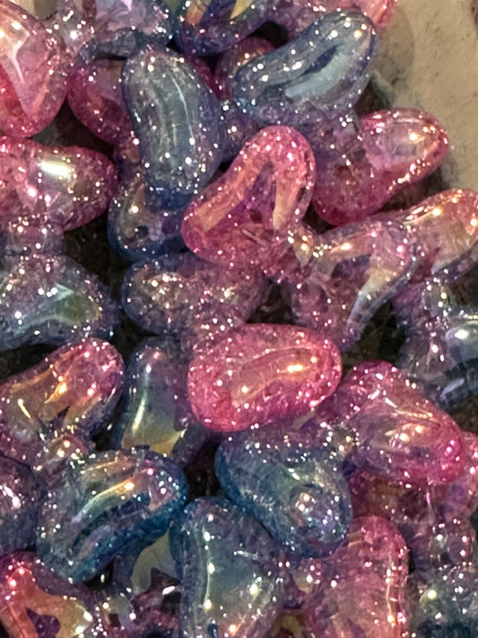 Crackle bow beads/ Five (5) pink and blue mixed pastel bow beads / jewelry Bead/ beadable pen/ keychain bead/ acrylic