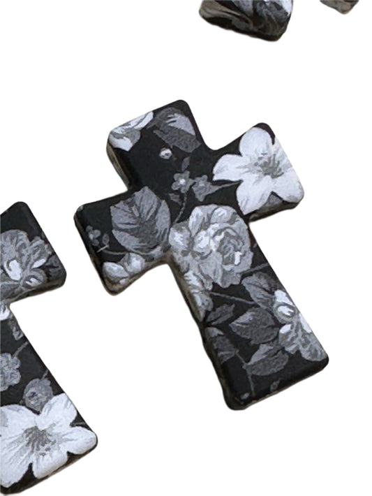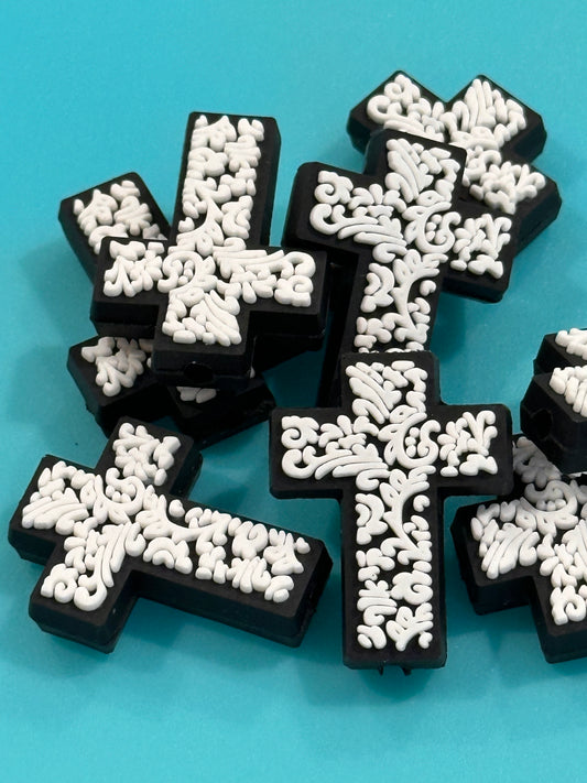 Cross Floral /New Focal Bead/ beadable pen/ Silicone bead/ keychain bead/monochrome/ black and white floral/ flowers
