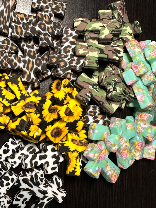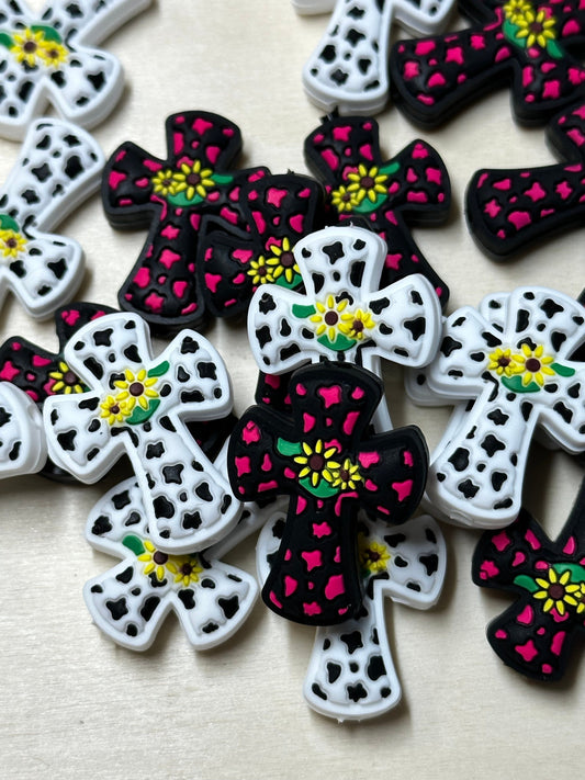 Cross Focal Bead/ cow print/ Silicone bead/ keychain bead/ Sunflower/Floral /Leopard