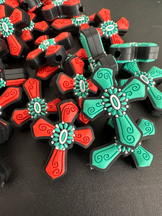 Cross Focal Bead/ Western Style/ Silicone bead/ keychain bead/ Aztec/ Western