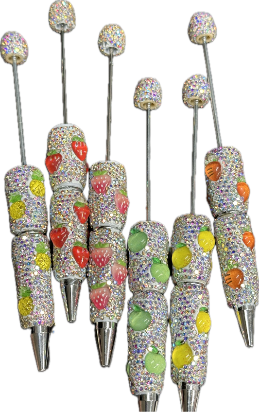 DIY adorable fruit rhinestone bling beadable pens/craft pens/ sparkly pens/ click pen/ bling pen/ beadable pens/ ink pen/ DIY pen