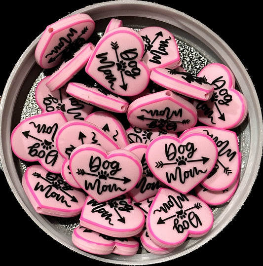 Dog Mom beads/ Focal Bead/ beadable pen/ Silicone bead/ keychain bead/ pet / dog/ pink or black heart/