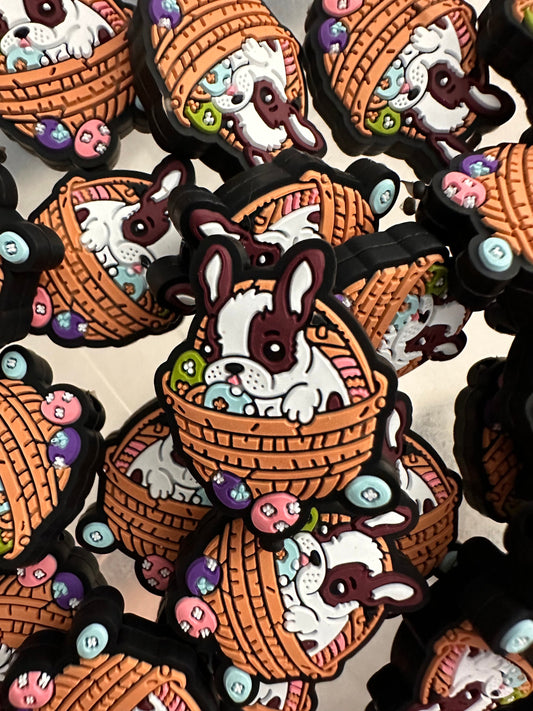 Dog in basket Focal Bead/ beadable pen/ Silicone bead/ Easter basket/ Boston terrier