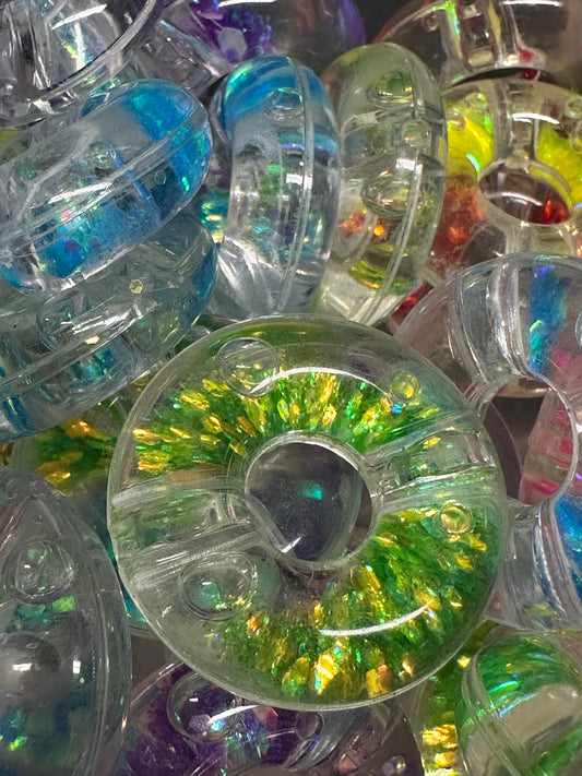 Donut shaped glitter liquid beads/ shaker beads/ snow globe beads/ jewelry Bead/ beadable pen beads/ keychain bead/ DIY/ Three (3) beads included/ 20+mm