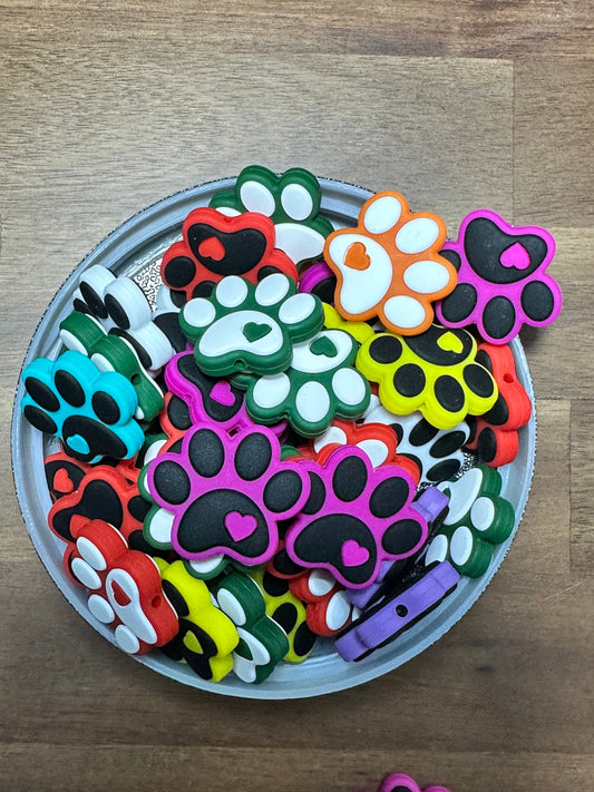 Dog paw/ Focal Bead/ beadable pen/ Silicone bead/ keychain bead/ fur baby/ pet/ heart dog/ dog mom