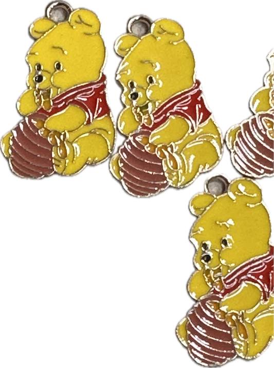 Enameled metal charm/yellow bear with honey pot/ pendant/ DIY charm bracelet/ DIY necklace