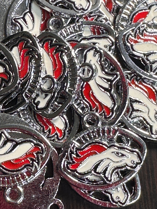 Enameled metal charms/ Denver Broncos pendant/ DIY charm bracelet/ DIY necklace