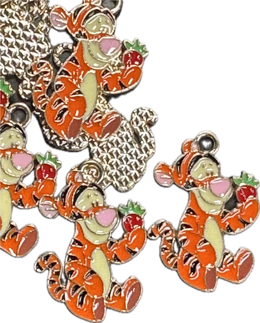 Enameled metal charm/orange tiger/ pendant/ DIY charm bracelet/ DIY necklace