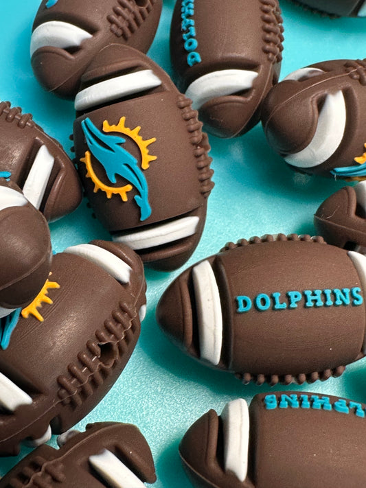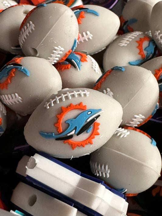 3D football shaped Miami Dolphins focal bead