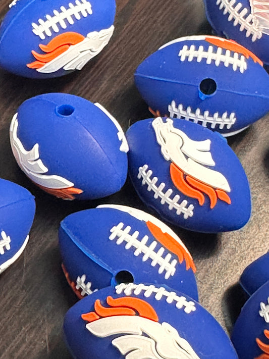 3D football shaped Denver Broncos focal bead