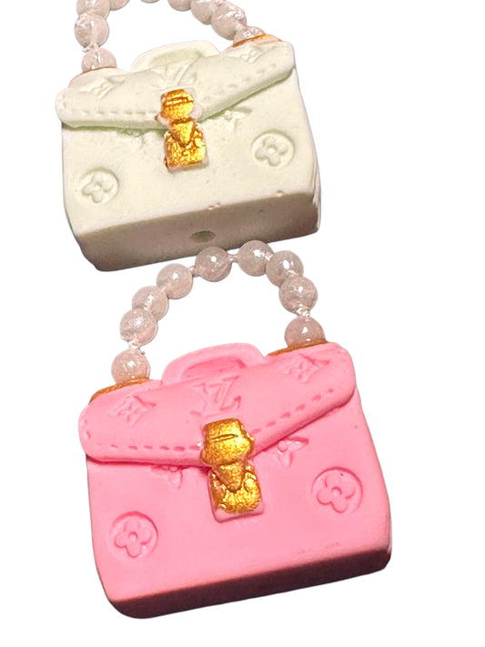Fancy design handbag with beaded pearl handle/set of 5/hole for jewelry,beaded pens, and phone charms