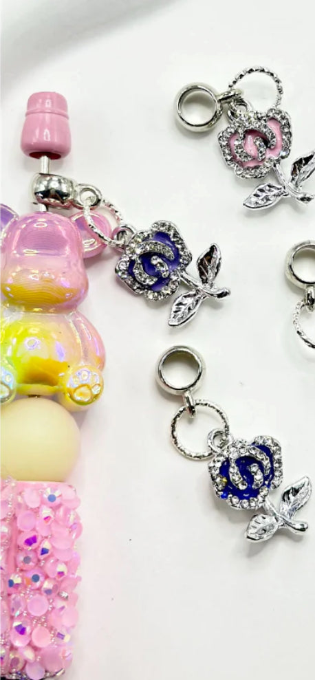 Fancy flower spacer dangling rhinestone beads/Five beads included/fancy Beads/ beadable pen/ keychain bead/Black rose only/ 38mm/