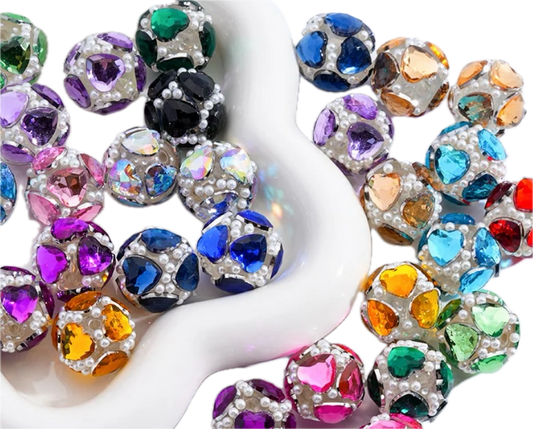 Fancy handmade heart rhinestone beads/fancy Beads/ beadable pen/ keychain bead/(5) Five beads included /20mm