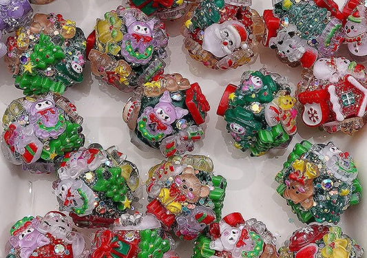 Fancy handmade glow in the dark Christmas beads/luminous/fancy Beads/ beadable pen/ keychain bead/ /20mm approx./ clay beads with charms/tree/sanrio/house/kuku/poncho/ bear