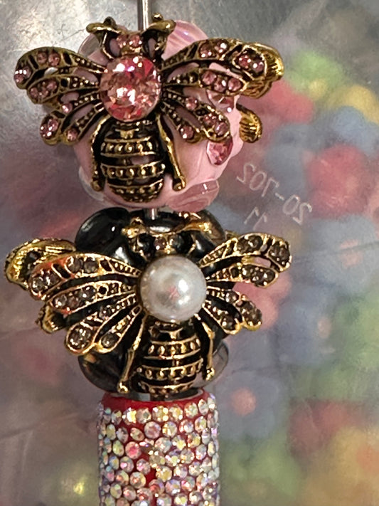 Fancy handmade bee rhinestone beads/one bead included/fancy Beads/ beadable pen/ keychain bead/ /20mm approx.