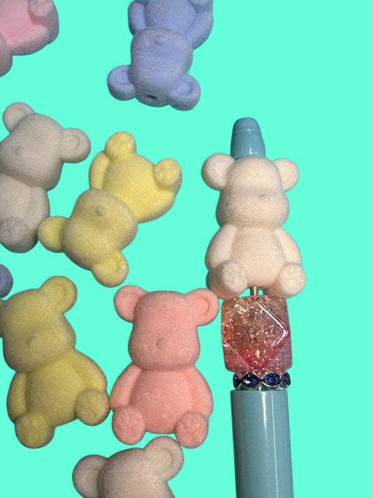 Flocked bears/Focal Bead/ beadable pen/ fuzzy bear bead/ keychain bead
